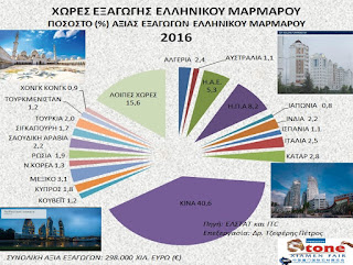 Αξία εξαγωγών και εισαγωγών ελληνικού μαρμάρου