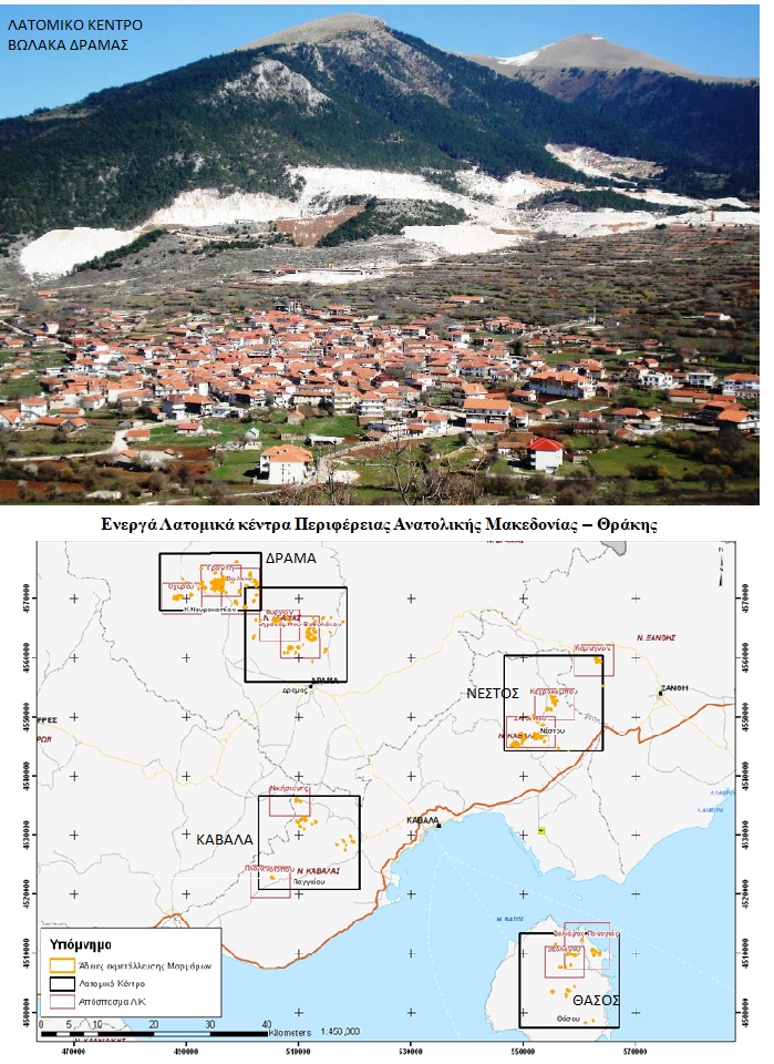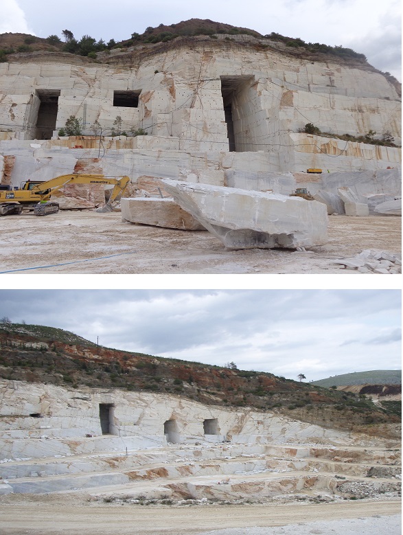 Στη συνέχεια η εταιρεία «ΠΑΥΛΙΔΗΣ Α.Ε. ΜΑΡΜΑΡΑ-ΓΡΑΝΙΤΕΣ» ξεκίνησε κι αυτή υπόγεια εκμετάλλευση στην περιοχή Γρανίτη Νευροκοπίου Δράμας, που αποτελεί μέρος του ευρύτερου ενιαίου λατομείου που παράγει το περίφημο παγκοσμίως λευκό μάρμαρο «Αριστον» (Εικ. 4) και τέλος η εταιρεία ΙΚΤΙΝΟΣ ΕΛΛΑΣ Α.Ε. στο λατομείο της στη θέση Λεπτοκαρυές όπου εξορύσσεται το λευκό δολομιτικό μάρμαρο Βώλακα (Εικ. 7,8). Και στα δύο υπάρχει αρμονικός συνδυασμός της επιφανειακής με την υπόγεια εκμετάλλευση.