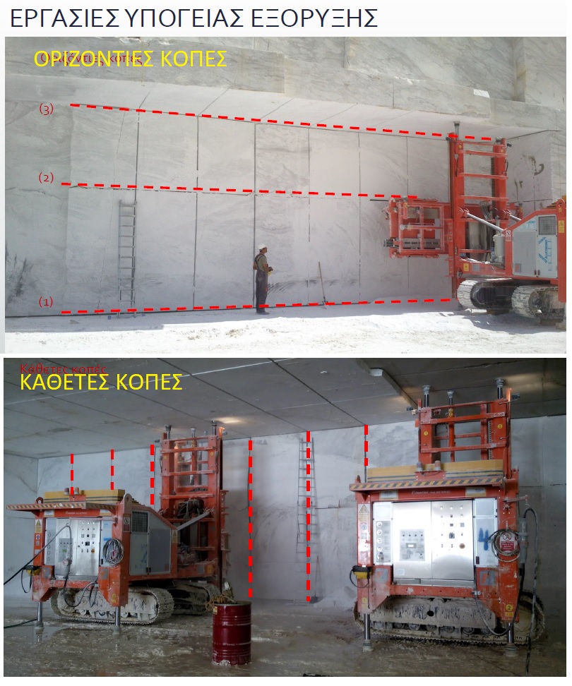 | Εικ.5. Υπόγειες εξορυκτικές εργασίες με την χρήση σύγχρονου εξοπλισμού (αλυσοπρίονου), FHL Κυριακίδης ΑΒΕΕ |